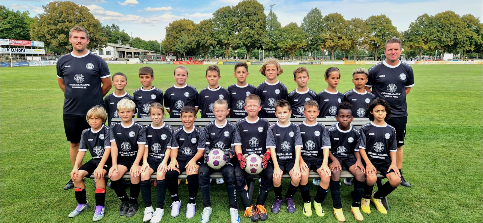 hinten von Links: Co-Trainer Andreas Korell, Anis, Nail, Lina, Moritz, Akan, Justus, Jonas, Aron, Jasper, Trainer Timo Schäfer